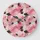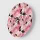 Artistic Pink Blooms Black Ink Abstract Große Wanduhr