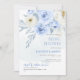ArtsApp Brautdusche Einladung - staubblaue Aquarellfarben-Rose, staubiges blaues Blattwerk und mit Goldstaub bestreute weiße Gänsebläschen. Alle Elemente können bearbeitet werden. Copyright © 2023 ArtsApp™. Alle Rechte vorbehalten.