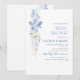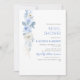 ArtsApp Braudusche Einladung - staubblaue Aquarellfarben-Rose, üppiges grünes Blattwerk und weiße, mit Goldstaub bestreute Molkereien. Alle Elemente können bearbeitet werden. Copyright © 2023 ArtsApp™. Alle Rechte vorbehalten.