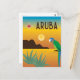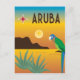 Aruba helle farbenfrohe Illustration mit einem felsigen Strand, Sonne, abgelegene Pflanze, einem braunen, gepflasterten Parkett und dem vier spitzen Stern aus der Fahne von Aruba. Der Name befindet sich in einem Vintagen Deko Schriftart. Feiern Sie Erinnerungen Ihrer Inselurlaub oder Karibik-Kreuzfahrt.