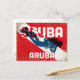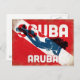 Aruba Karibik Tauchdesign. Ein Vintager Retro-Hintergrund mit roter Scuba-Fahne und marineblauem Taucher.