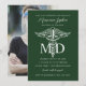 MD und Caduceus medizinisches Symbol, bearbeitbare Farben und Initialen. Arbeitet sowohl als Einladung zur Graduiertenparty als auch als Ankündigung eines Abschlusses. Foto auf der Rückseite ist optional