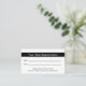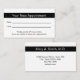 Dieser berufliche Arztbesuchskarte ist zweiseitig. Auf der einen Seite steht "Ihr nächster Termin" und hat Zeilen für Datum und Uhrzeit des Termins. Am unteren Rand können Sie Text anzeigen, um eine benutzerdefinierte Nachricht zu erstellen, falls gewünscht. (Angezeigt: Bitte geben Sie 24 Stunden im Voraus an, wenn Sie Ihren Termin nicht behalten haben.) Auf Seite zwei wird Text angezeigt, der durch den Namen des Arztes (oder den Praxisnamen) und seine Adresse, Telefonnummer und Website ersetzt werden soll. Alle Texte können bearbeitet oder gelöscht werden. Der Text ist schwarz.