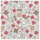 Gewebe für Krankenschwestern, Ärzte und medizinisches Fachpersonal in Weiß mit einem Muster aus Stethoskopen, Medizin, Thermometern, Bandungshilfen in Braun und Beige und Herz.