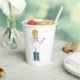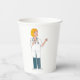 Eine Doktorin in ihren Ärzten kleidet. Dieses Design sieht bei diesen Papierbechern wirklich effektiv aus