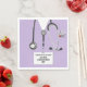 Servietten für Doktoranden mit Lavendelkrankenhaus-Peeling, Stethoskop und Schweizer Armeemesser. Bearbeiten Sie den Text, um den Namen des Arztes hinzuzufügen.
