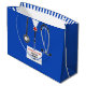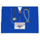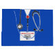 Kreativer Abschluss, Geburtstag oder Gratulationen Geschenktasche für den Arzt mit blauen Hospital-Peeling und Stethoskop. Bearbeiten Sie den Text, um den Namen des Arztes, des Arztes oder des Pflegepersonals und seine medizinischen Referenzen hinzuzufügen.