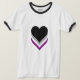Ringer-T - Shirt mit Herzdesign in asexuellen Farben; Schwarz, Grau, Weiß und lila, Streifen Stolperflagge, Design der Regenbogenfarben Liebe