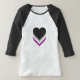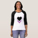 Ladys 3/4 Sleeve Raglan T - Shirt mit Herzdesign in asexuellen Farben; Schwarz, Grau, Weiß und lila, Streifen Stolperflagge, Design der Regenbogenfarben Liebe