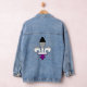 Denim Jacket mit Fleur-de-lis-Symbol (Fleur-de-lys oder Lilie-Blume) mit Regenbogenstreifen aus schwarz, grau, weiß und lila aus asexuellen Fahnen; Ass Stolz Design