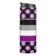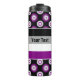 Thermal tumbler with the asexuality pride flag and a seamless modern geometric flower pattern in the colors of the pride flag; a black, gray, white, and purple ace pride design on a black background with an editable text template for your name or message
