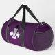 Duffle Bag with fleur-de-lis (fleur-de-lys or lily flower) symbol with rainbow stripes of black, gray, white and purple from asexuality flag; ace pride design on purple background