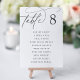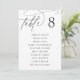 Einfache und schicke Tischnummer-Karten in weichem Asche Schwarz und klassisch Weiß machen eine elegante Aussage bei Ihrer Hochzeit oder Veranstaltung. Das Design enthält handgeschriebene Kalligrafieschrift mit Ihrer Tischnummer in klassischen Zahlen. Personalisieren Sie die Namen der Gäste, die am Tisch sitzen.