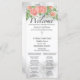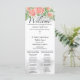 katholisches Hochzeitsprogramm mit Mass. Diese elegante, katholische Hochzeitsfeier mit einer großen Programmkarte ist zweiseitig. Es verfügt über einen Bouquet mit blauen, rosafarbenen, blumenfarbenen Aquarellfarben-Blume und ein Christliches Kreuz auf der Vorderseite, zusammen mit Ihren Details, die in einem klassischen Serif-Schriftart und schicken Kalligraphie-Skript geschrieben sind.