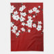 Schwarz-Weiß Kirsche blüht Ast auf einem schimmernden rubinroten Hintergrund. Die reiche und lebendige Farbkombination, die mit Kirschblüten verbunden ist, schafft ein Gefühl von Positivität, Wärme und Stil für den Betrachter.