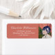 Schönes Adressetikett, das Sie mit Ihrem eigenen Namen und Ihrer eigenen Adresse anpassen. Verwenden Sie auf Ihrem Briefumschlag für Geburtstage, Jubiläen oder besondere Feiern. Schöne Aquarellfarbe Asiatische Schönheit mit einem Korallenschirm, mit einem gelben Komon und einer rosa Blume im Haar