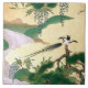 Herrliche Vintage feine japanische Schirm-Kunstmalerei des chinesischen Wisteria-Baums und der Blumen, des Wasserfalls/des Flusses und des langen angebundenen Vogels ist auf dieser Fliese. Bild ist das public domain wegen des abgelaufenen Copyright.