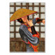 3D digitale Darstellung einer schönen asiatischen Schlachtfrau auf einem traditionellen Tempelhintergrund