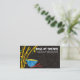 Geschickter Bambus, dekorative Schüssel- und Essstäbchen-Visitenkarte mit asiatischer oder chinesischer Art. Bambus des gelbes Gold 3 mit grünem Blätter, blauer dekorativer Nahrungsmittelschüssel und roten Essstäbchen auf einem dekorativen schwarzen Hintergrund.