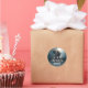 Ein Geburtstag Dankeschön an einen Aufkleber mit einem Foto eines asiatischen Elefanten mit abgerundeten Ohren stehend in einem Wald, der auf den Betrachter schaut, mit Sonnenlicht, das durch den Baumkronen strömt.