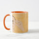 Diese Tasse ist mit einem handgezeichnet Design bedruckt, in dem eine Frau auf orangefarbenem Hintergrund das ASL-Zeichen für "GLASSES"signiert.