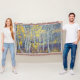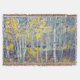 Ein dichtes Apfelhain füllt den Rahmen, die weiße Rinde steht in scharfem Kontrast zu den lebhaften, gelben Blätter, die den Waldboden bedecken. Das Sonnenlicht filtert durch die Äste und wirft ein warmes Licht auf die Szene. Die Bäume stehen groß und schlank, ihre Äste reichen zum Himmel. Der Boden ist mit einem Teppich gefallener Blätter bedeckt, was ein Gefühl von Ruhe und Entspannung schafft.