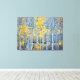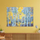 Ein Foto erfasst einen dichten Hain von Aspen-Bäumen in ihrem Herbstglanz. Die schlanken, weiß gebellten Stämme stehen hoch vor einem Hintergrund lebendiger gelber Blätter und schaffen einen auffallenden Kontrast. Das Sonnenlicht filtert durch die Äste und gießt gedeckte Schatten auf den Waldboden. Das Bild ruft ein Gefühl der Ruhe und der Schönheit der Natur hervor, die sich in der Jahreszeit verändert.