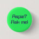 Neon-grüner Knopf, der "Aspie sagt? Fragen Sie mich!" Für die Person, die mit Asperger Syndrom identifiziert und will, um Leute zu erziehen, die Schwierigkeit hat, ein Gespräch zu beginnen.