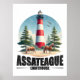 Das historische Leuchtturm von Assateague mit wilden Pferden, Bäumen und Möwen. Unter dem Bild ist die Typografie, Assateague Lighthouse. Dieses Poster oder Druck macht eine großartige Ergänzung zu jeder Zuhause.