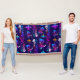Abstract design with colorful and vibrant geometric shapes of archers and knights at the siege of a medieval fortress castle. Design inspired by medieval castles with a happy look. Perfect for lovers of gothic and medieval aesthetics. Customizable color background.