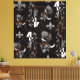 Abstract design with silver geometric shapes of archers and knights at the siege of a medieval fortress castle. Design inspired by medieval castles with a happy look. Perfect for lovers of gothic and medieval aesthetics. Customizable color background.
