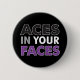 Zeigen Sie Ihren Asstolz, indem Sie diesen Knopf mit dem Slogan "Asse in Ihren Gesichtern" in den Farben der Asflagge zur Schau tragen. Alle Gewinne von den Verkäufen dieses Aufklebers gehen zur Neu-England Asse meetup Gruppe, zu einem Stützungskonsortium für asexuale Spektrumleute in Boston und zu ihren Ereignissen für AAW dieses Jahr. Sehen Sie meetup.com/newenglandaces zu mehr Information über die Gruppe.