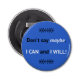 Der Titel lautet: "Sag nicht vielleicht. ICH KANN UND ICH WERDE." Bei diesem Flaschenöffner geht es um Ermächtigung, Selbstbewusstsein, Gefühl zuversichtlich und entschlossen. Der Text ist schwarz und weiß, auf einem hellblauen Hintergrund.