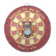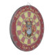 Rosa Dartboard mit benutzerdefiniertem Text. Alter Zauberer mit rosa Umhang, der Kristallzauberkugel betrachtet.