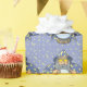 Alter Zauberer mit blauem Kap, der Kristallzauberkugel anschaut.