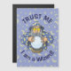 Alter Zauberer mit blauem Kap, der Kristallzauberkugel anschaut.