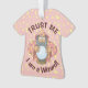 Alter Zauberer mit rosa Umhang, der Kristallzauberkugel betrachtet.