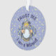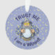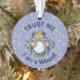 Alter Zauberer mit blauem Kap, der Kristallzauberkugel anschaut.