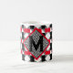 Wenn Retro-Vintager Klassiker moderne Kunst inspiriere, wird dieses geometrische Quadrat-Muster durch den Vintagen Büffel-kariert und Chekerboard-Stil inspiriert, wobei eine Touch abstrakte geometrische Formen in ästhetischem Muster aufweist, um ein stilvolles und elegantes Dekorationsmuster zu bilden, das aus geometrischen, rot-schwarz-weißen Farbblöcken besteht, die eine angenehme Dekoration auf einer Tasse bilden. Dieses Design kann leicht personalisiert werden mit dem eigenen Monogram Inital als das beste Geburtstagsgeschenk und Feiertage, die Weihnachten für den neuen Rot- und Schwarz-Muster-Fan für eine dekorative Kunst.