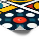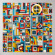 Dieses dynamische geometrische Muster zeichnet sich durch eine fesselnde Mischung aus farbenfrohen Formen aus, zu denen Dreiecke, Kreise und Quadrate zählen. Mit seinen kühnen Farbtönen und dem harmonischen Design schafft es eine energetische, aber ausgewogene Ästhetik, die perfekt dazu geeignet ist, den modernen Räumen oder künstlerischen Projekten eine lebendige Touch hinzuzufügen.