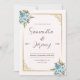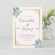 Diese ästhetische und individuell gestaltbare Einladungskarte mit Save the Date Hochzeitskartentafel und gemischter blauer Aquarellblume mit goldener Zierleiste, gepaart mit einer klassischen Kalligraphie-Schriftart-Paarung.