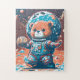 Ein niedlicher Astronautenbär, der einen Basketball im Weltraum hält. Niedliches Design für Kinder.