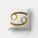 Astrologisches Zodiaka zeigt Sonnensignatur, Krebs Gold, weißes Kissen