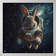 Niedliches Sonnenbad, das durch den Raum zwischen den Sternen schwebt, in einem Astronautenoutfit