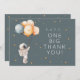 This first birthday thank you card features a hand-painted astronaut holding balloons with scattered stars on a muted blue background. The phrase “One Big Thank You” ties into a countdown-inspired first birthday theme. The artwork colors are not editable, but all text can be personalized to match your celebration.