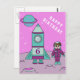 Astronaut Girl on Moon Space Happy Birthday Postkarte