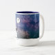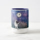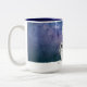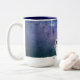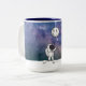 Astronaut im Raum mit Mondballonkosmos spielt die Zweifarbige Tasse