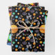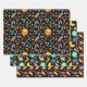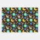 Astronaut- und Raumschiffmuster mit schwarzem Hintergrund