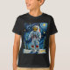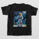 Dieses lebendige Kunstwerk vereint einen voll geeigneten Astronauten, der inmitten einer schneebedeckten Landschaft mit immergrünen Bäumen stehend ist. Set gegen einen wirbelnden Sternenhimmel, der an Van Gogh's Sternennacht erinnert. Der Anzug des Astronauten ist mit amerikanischen Fahnenmustern und roten Kommunikationsdrähten detailliert und spiegelt ein Erkundungsthema wider, das Weltraum mit klassischer Kunst verbindet.