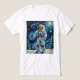 Dieses lebendige Kunstwerk vereint einen voll geeigneten Astronauten, der inmitten einer schneebedeckten Landschaft mit immergrünen Bäumen stehend ist. Set gegen einen wirbelnden Sternenhimmel, der an Van Gogh's Sternennacht erinnert. Der Anzug des Astronauten ist mit amerikanischen Fahnenmustern und roten Kommunikationsdrähten detailliert und spiegelt ein Erkundungsthema wider, das Weltraum mit klassischer Kunst verbindet.